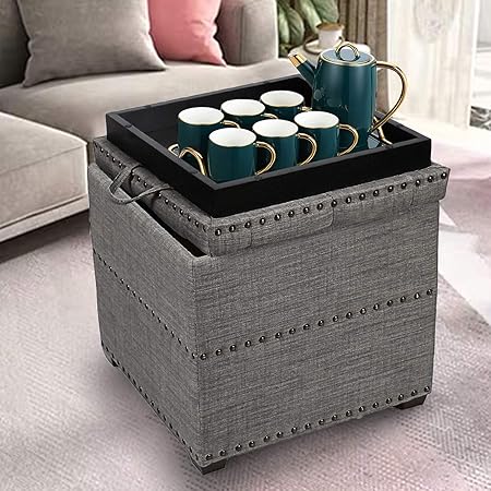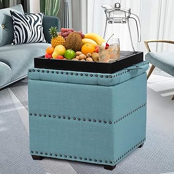 The Convenience Concepts Designs4Comfort Storage Ottoman with Trays can be used as a comfortable footrest coffee table or storage space in your living room. A small ottoman in a harder material also can also make a great under desk foot rest. Sophia William Round Storage Ottoman Footrest Stool with Removable Lid Button Tufted Side Table Seat Padded Cotton Linen Upholstered Legs for Living Room Bedroom Kids Room-Blue 6899 Only 20 left in stock - order soon.