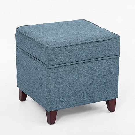 Amazon Com Adeco 17 Square Ottoman With Storage Small Storage Ottoman Foot Rest With Hinged Lid Blue Faux Linen Fabric Upholstered Footstool With Sturdy Wood Legs Kitchen Dining