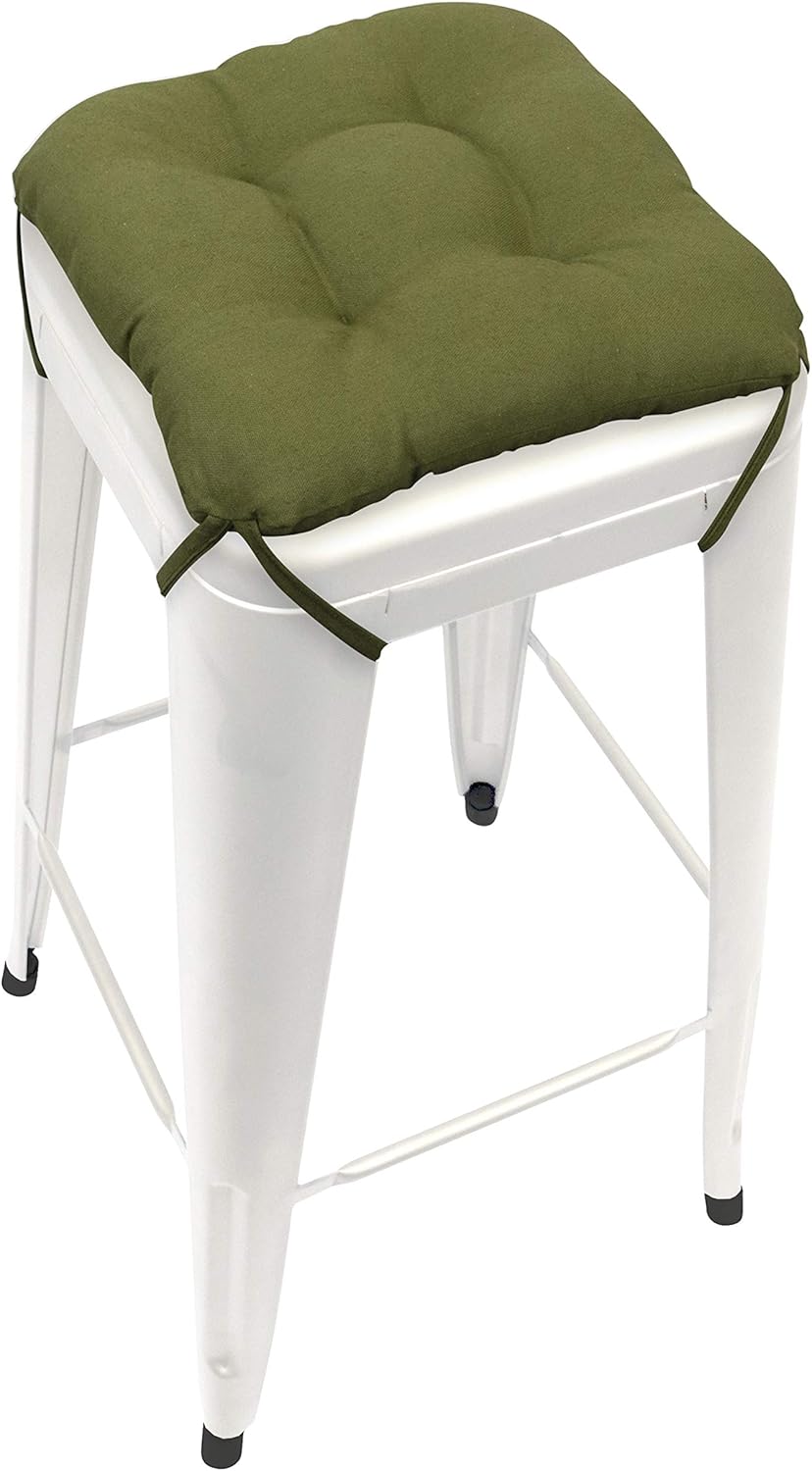 Amazon Com Cotton Duck Boxwood Green Square Bar Stool Cushion With Ties For 12 Metal Industrial Barstools 12 Tolix Style Counter Height Chairs Latex Foam Machine Wash Kitchen Dining