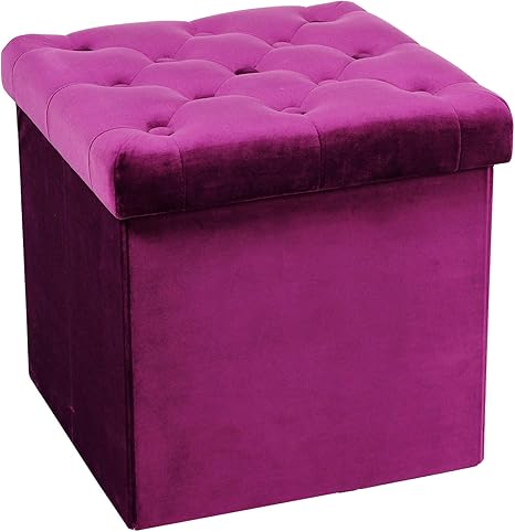 Amazon Com B Fsobeiialeo Storage Ottoman Velvet Tufted Folding Ottomans Footstool Rest Seat With Removable Lid Purple Medium Furniture Decor