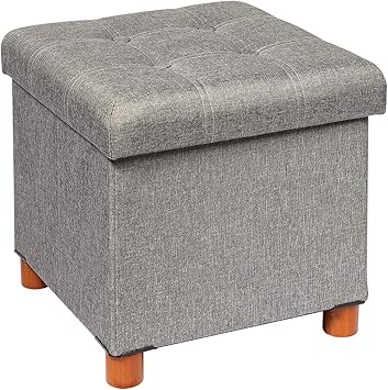 Amazon Com B Fsobeiialeo Storage Ottoman Cube Toy Chest Folding Footrest Stool Seat 12 6 X12 6 X12 6 Linen Grey Kitchen Dining