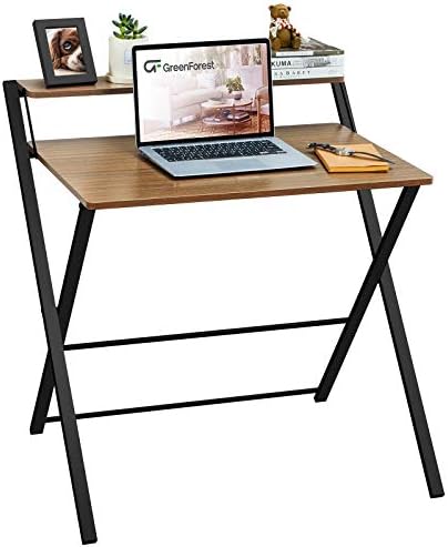 Amazon Com Greenforest Folding Desk For Small Space 2 Tiers Computer Desk With Shelf Home Office Small Desks For Small Spaces Folding Desk Foldable Furniture