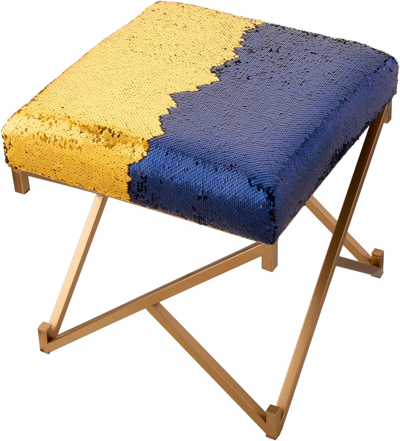 Glitzhome Modern Square Ottoman Footrest Sequin Stool With Metal Legs 17 30 H Sapphire Blue And Gold Furniture Decor Amazon Com
