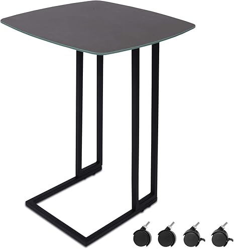 Amazon Com Modern End Table Rolling C Shaped Side Table With Casters Italian Designed Tempered Glass Top Weatherproof Outdoor Indoor Dark Gray Finish Nightstand Tv Trays Et220a Gy Kitchen Dining
