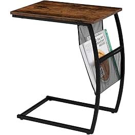 Yusong Side Table End Table For Living Room C Shaped Table With Stable Metal Frame Sofa Table For Coffee Snack Laptop Easy Assembly Rustic Brown Kitchen Dining Amazon Com